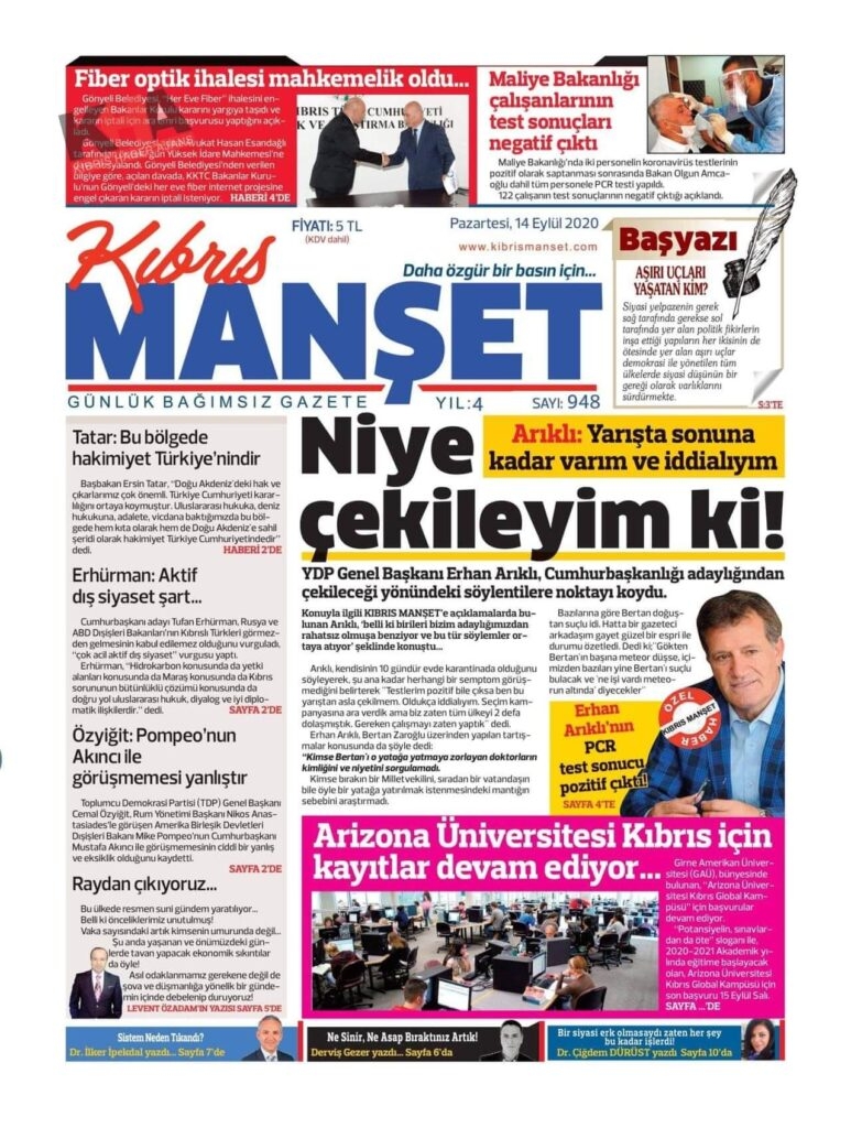 KKTC Gazeteleri bugün ne yazdı? 14 Eylül 2020 Pazartesi