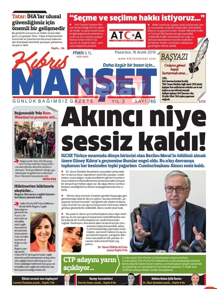 KKTC gazeteleri bugün ne yazdı (16 Aralık 2019)
