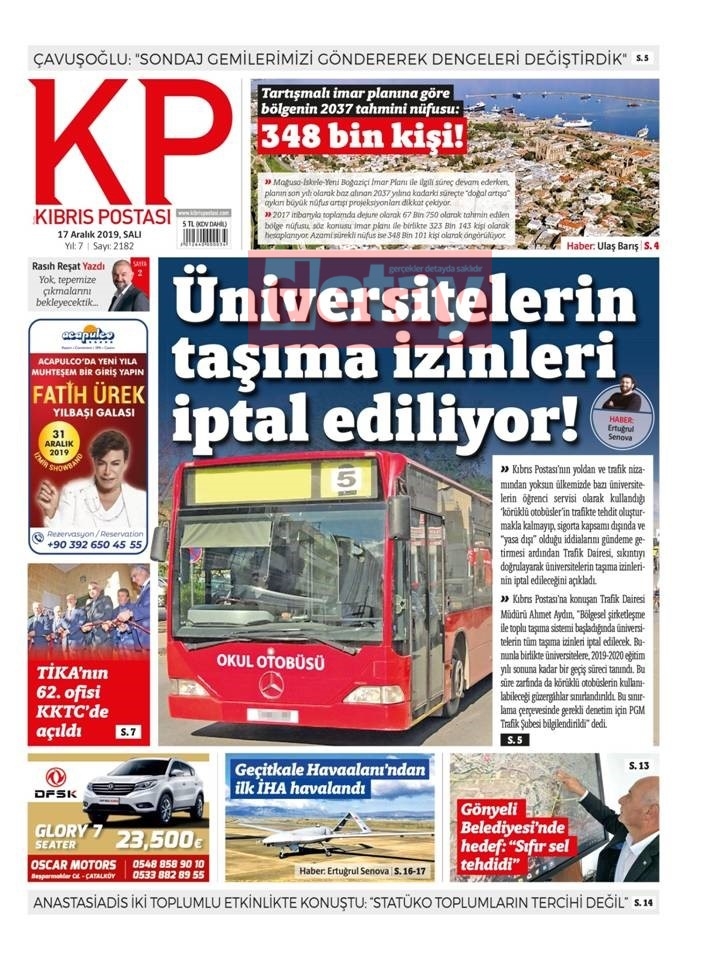 KKTC gazeteleri bugün ne yazdı (17 Aralık 2019)