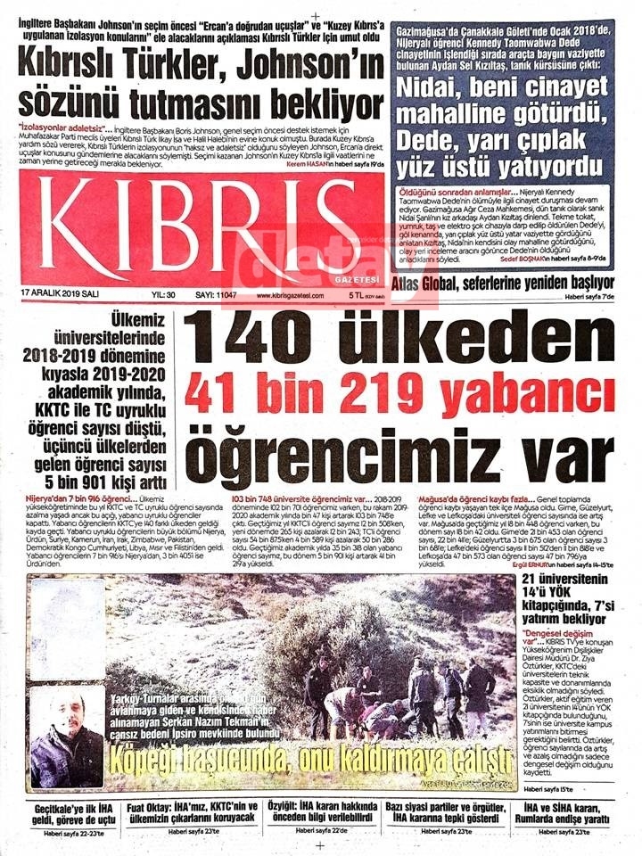 KKTC gazeteleri bugün ne yazdı (17 Aralık 2019)