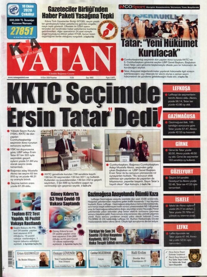 KKTC Gazeteleri Bugün Ne Yazdı? 19 Ekim 2020 Pazartesi