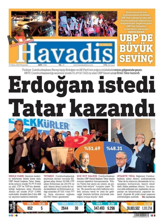 KKTC Gazeteleri Bugün Ne Yazdı? 19 Ekim 2020 Pazartesi