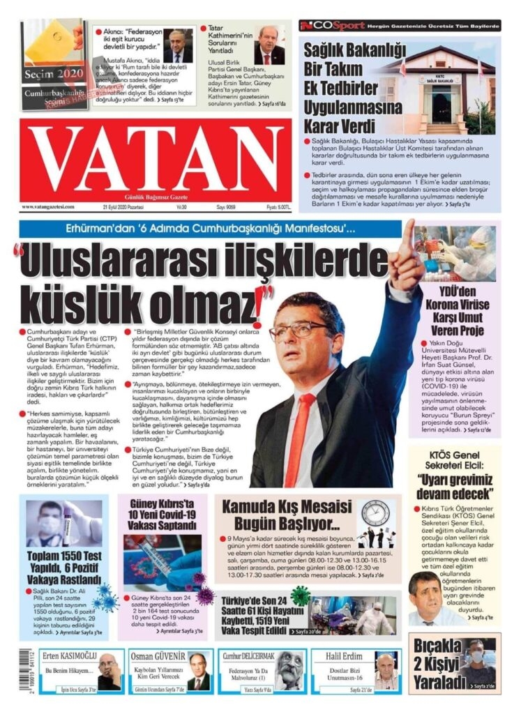 KKTC Gazeteleri Bugün Ne Yazdı? 21 Eylül 2020 Pazartesi