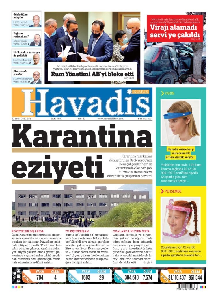 KKTC Gazeteleri Bugün Ne Yazdı? 22 Eylül 2020 Salı