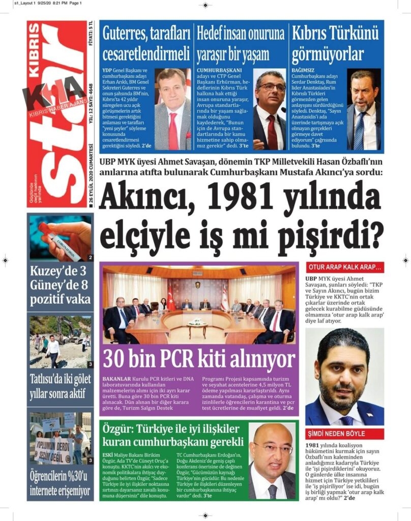 KKTC Gazeteleri Bugün Ne Yazdı? 26 Eylül 2020 Cumartesi