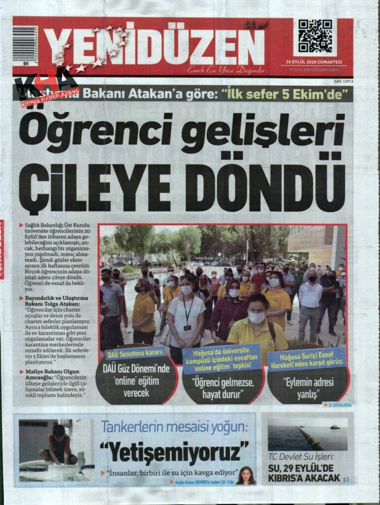 KKTC Gazeteleri Bugün Ne Yazdı? 26 Eylül 2020 Cumartesi