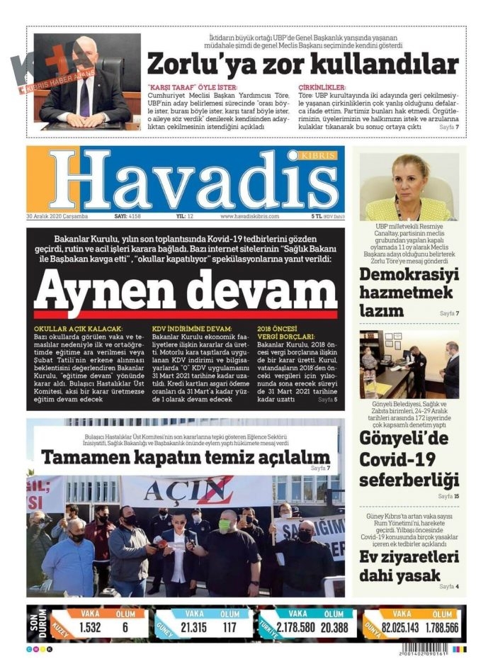 KKTC Gazeteleri Bugün Ne Yazdı? 30 Aralık 2020 Çarşamba