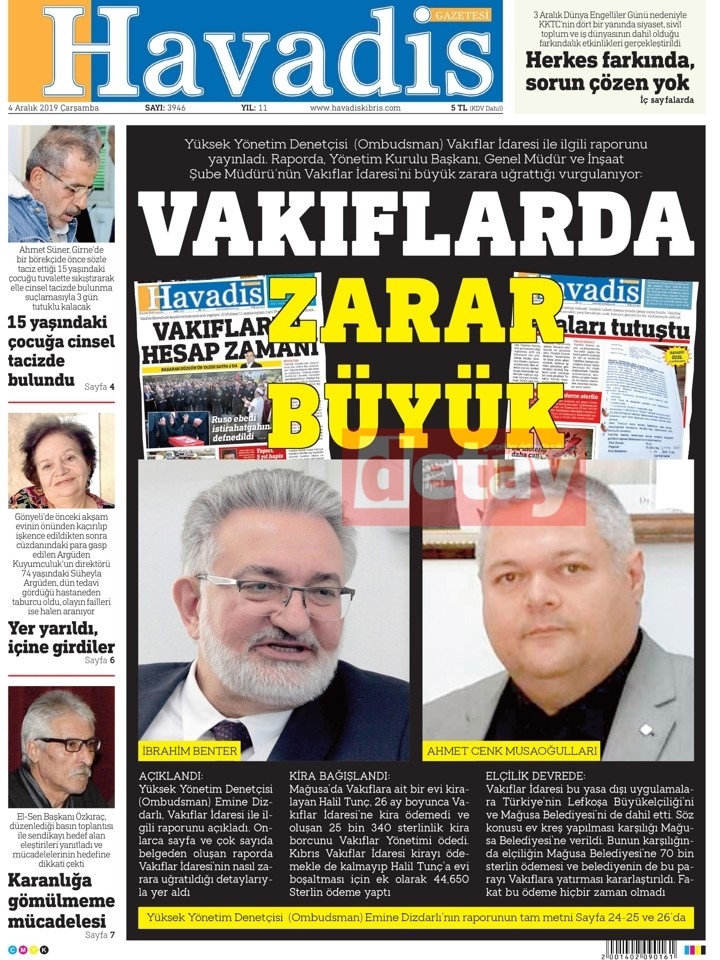 KKTC gazeteleri bugün ne yazdı (4 Aralık 2019)