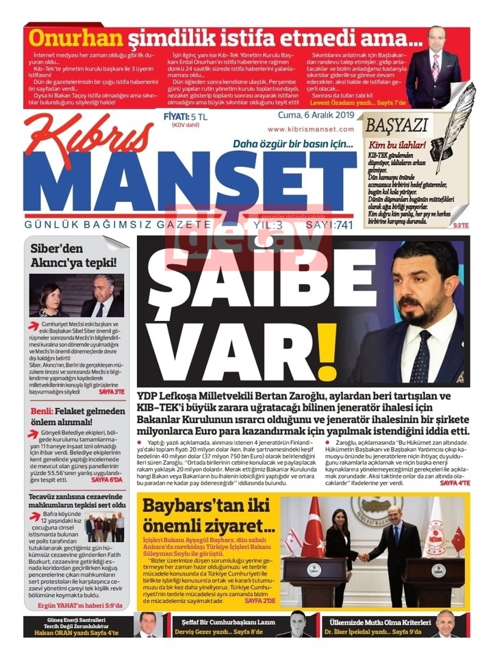 KKTC gazeteleri bugün ne yazdı? (6 Aralık 2019)