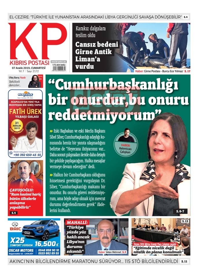 KKTC gazeteleri bugün ne yazdı? (7 Aralık 2019)