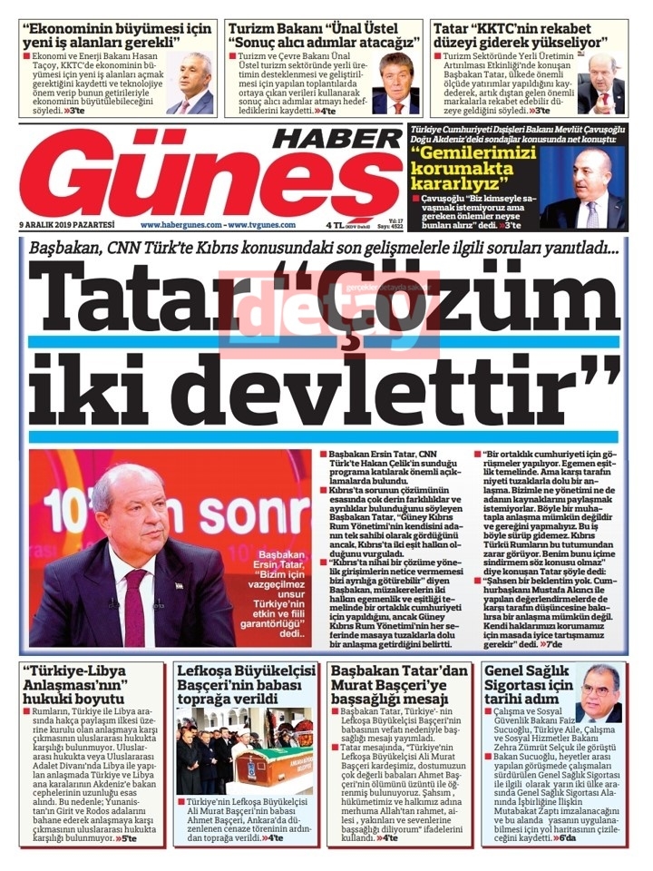 KKTC gazeteleri bugün ne yazdı (9 Aralık 2019)