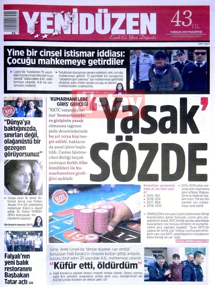 KKTC gazeteleri bugün ne yazdı (9 Aralık 2019)