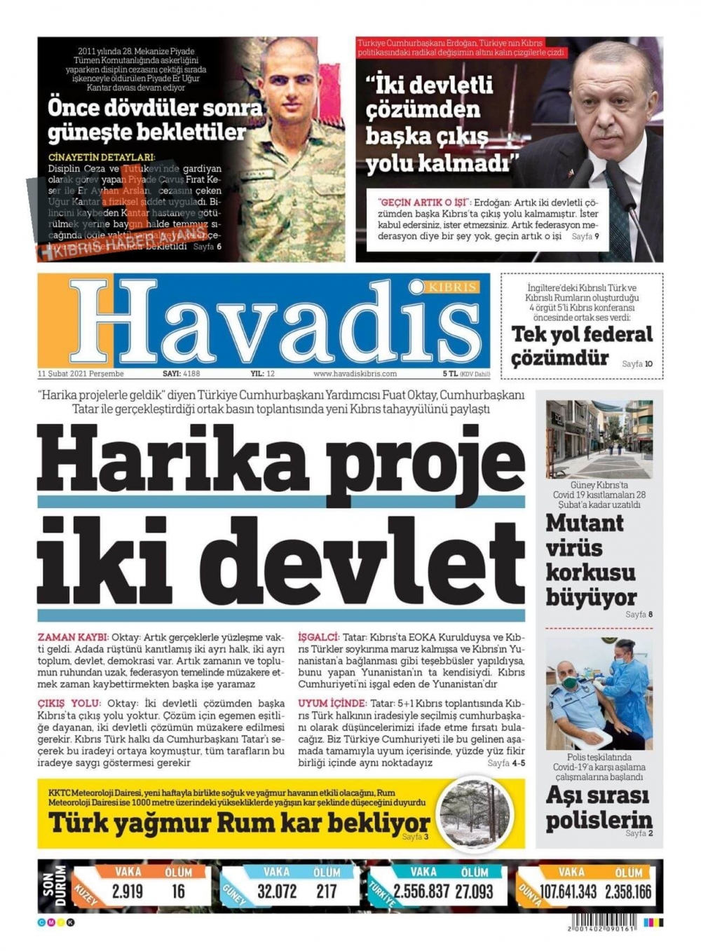 KKTC'de Bugün Gazeteler Ne Manşet Attı? (11 Şubat 2021)