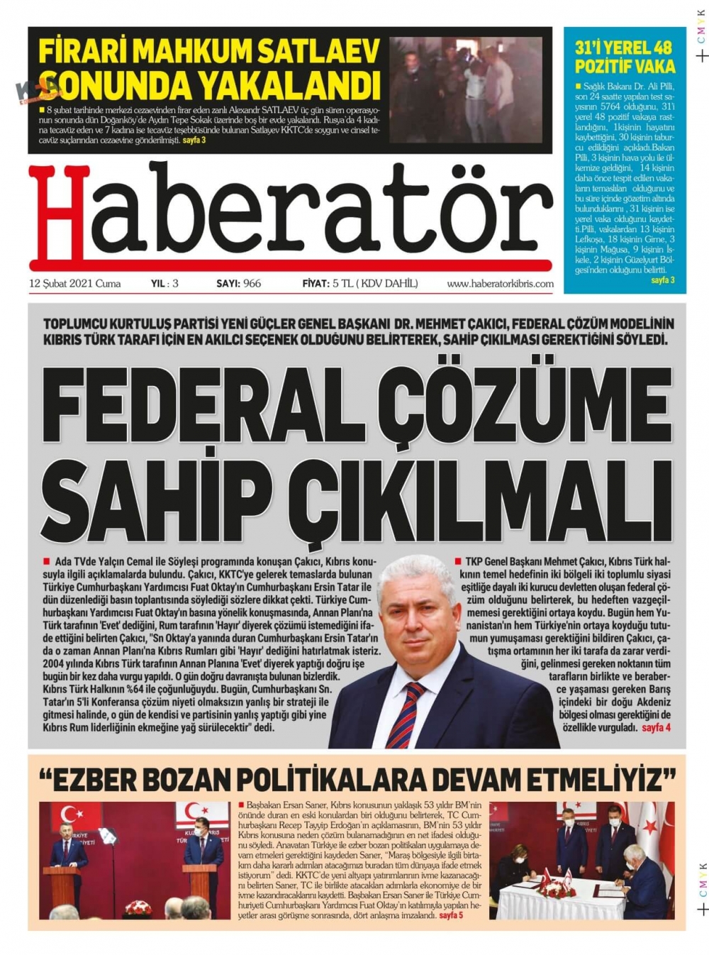 KKTC'de Bugün Gazeteler Ne Manşet Attı? (12 Şubat 2021)
