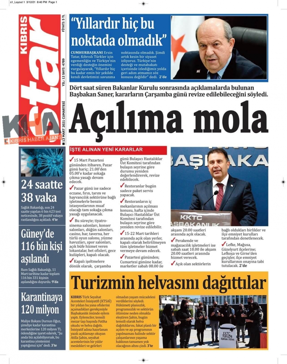 KKTC'de Bugün Gazeteler Ne Manşet Attı? (13 Mart 2021) galerisi resim 1