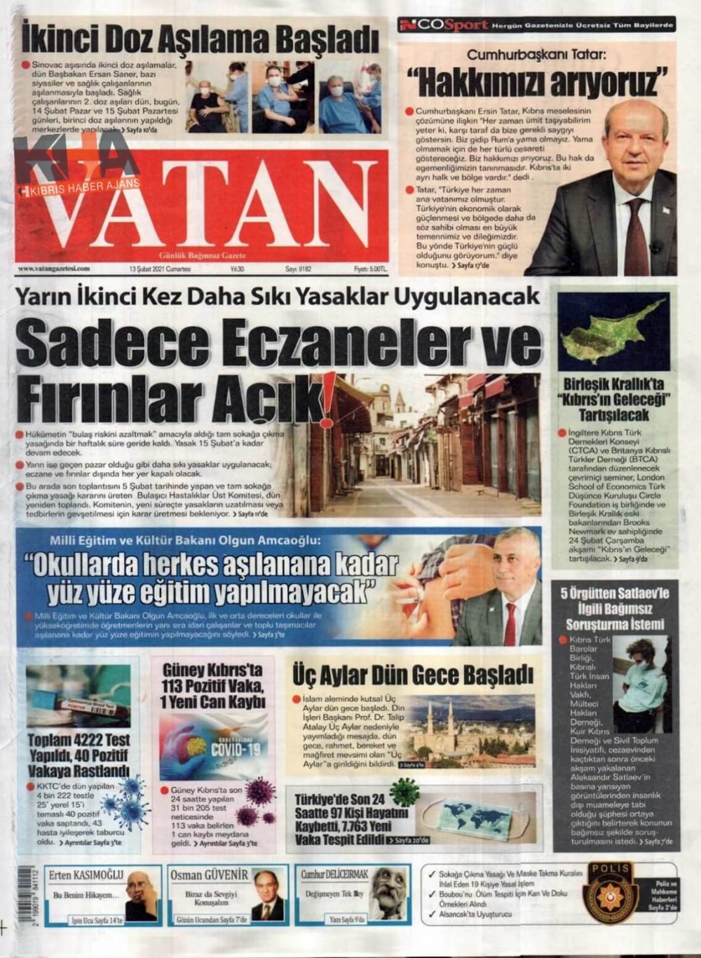 KKTC'de Bugün Gazeteler Ne Manşet Attı? (13 Şubat 2021)