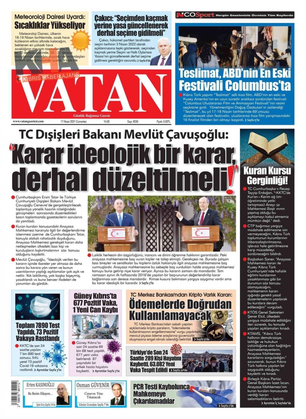 KKTC'de Bugün Gazeteler Ne Manşet Attı? ( 17 Nisan 2021)