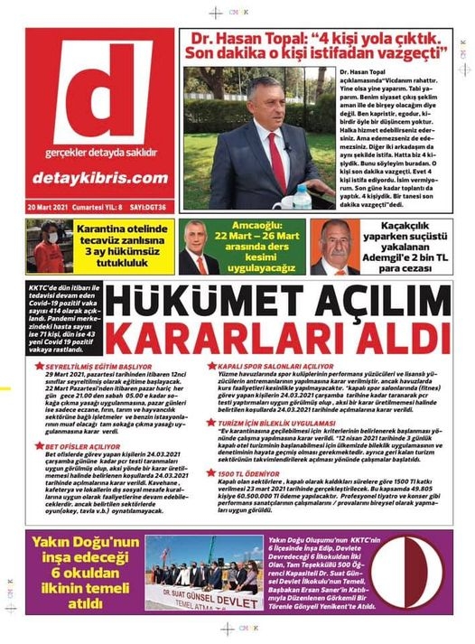 KKTC'de Bugün Gazeteler Ne Manşet Attı? (20 Mart 2021)