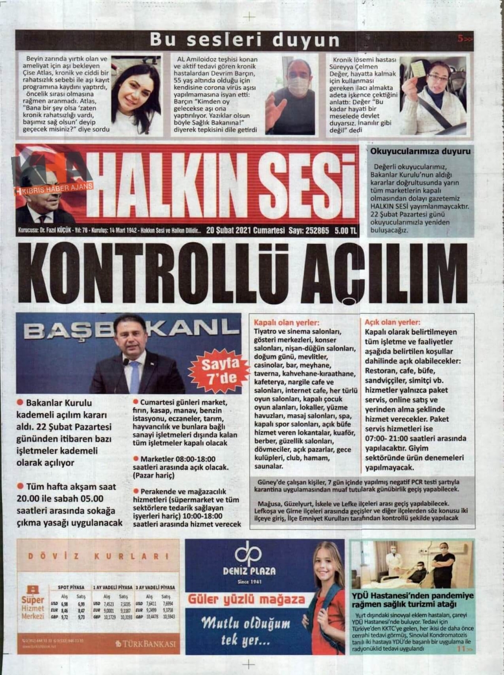 KKTC'de Bugün Gazeteler Ne Manşet Attı? (20 Şubat 2021)