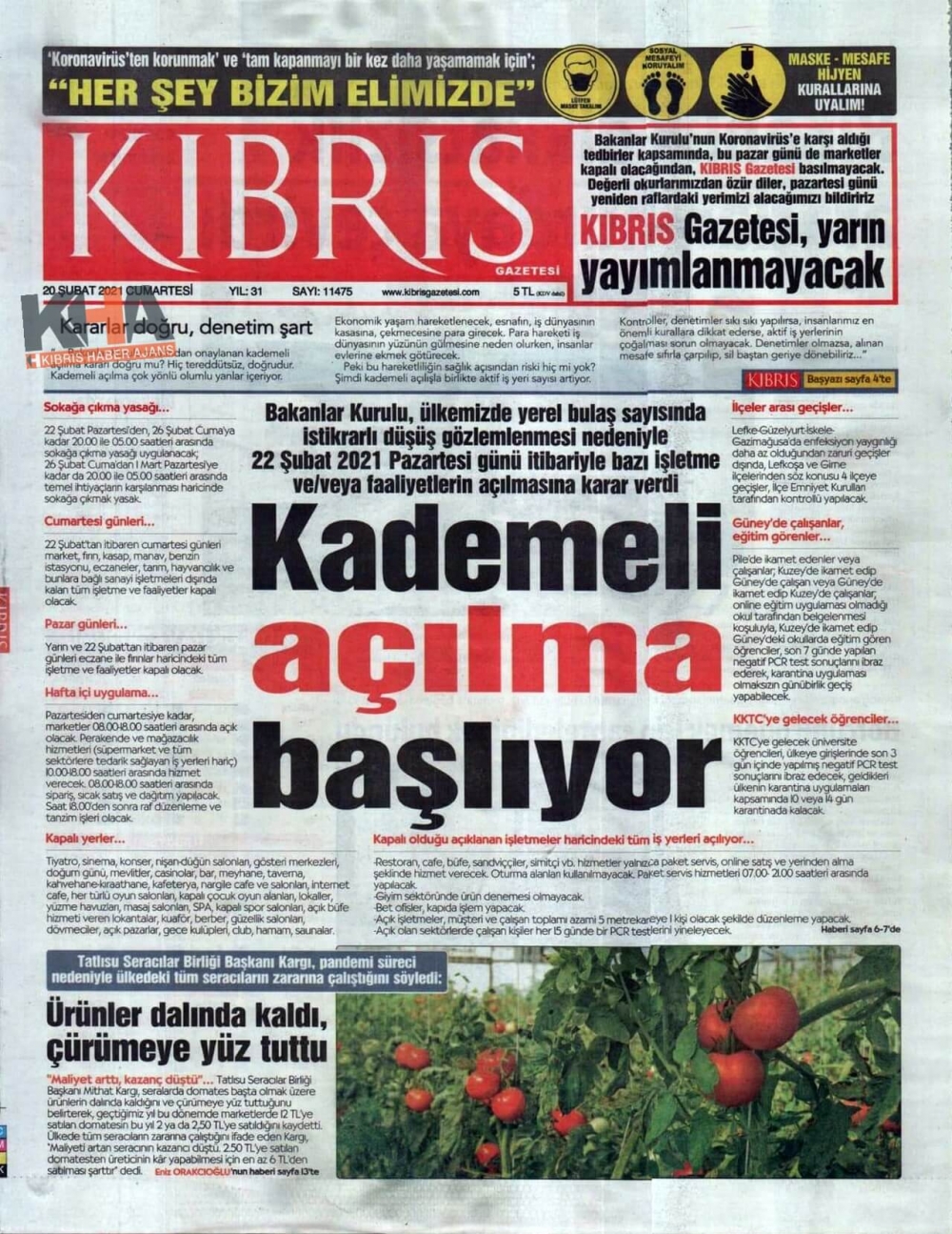 KKTC'de Bugün Gazeteler Ne Manşet Attı? (20 Şubat 2021)