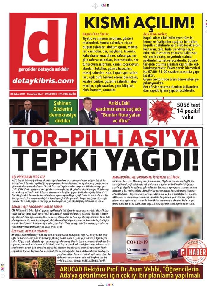KKTC'de Bugün Gazeteler Ne Manşet Attı? (20 Şubat 2021) galerisi resim 1