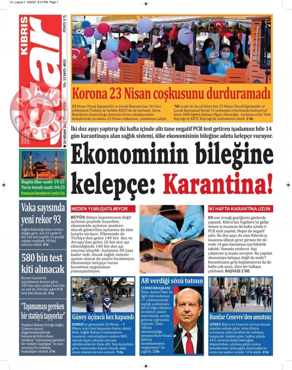 KKTC'de Bugün Gazeteler Ne Manşet Attı? (24 Nisan 2021)