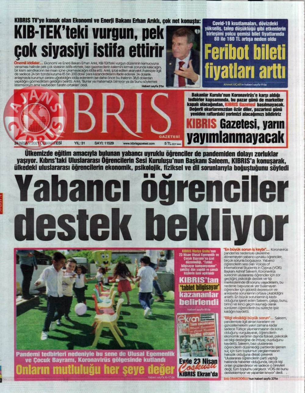 KKTC'de Bugün Gazeteler Ne Manşet Attı? (24 Nisan 2021) galerisi resim 1