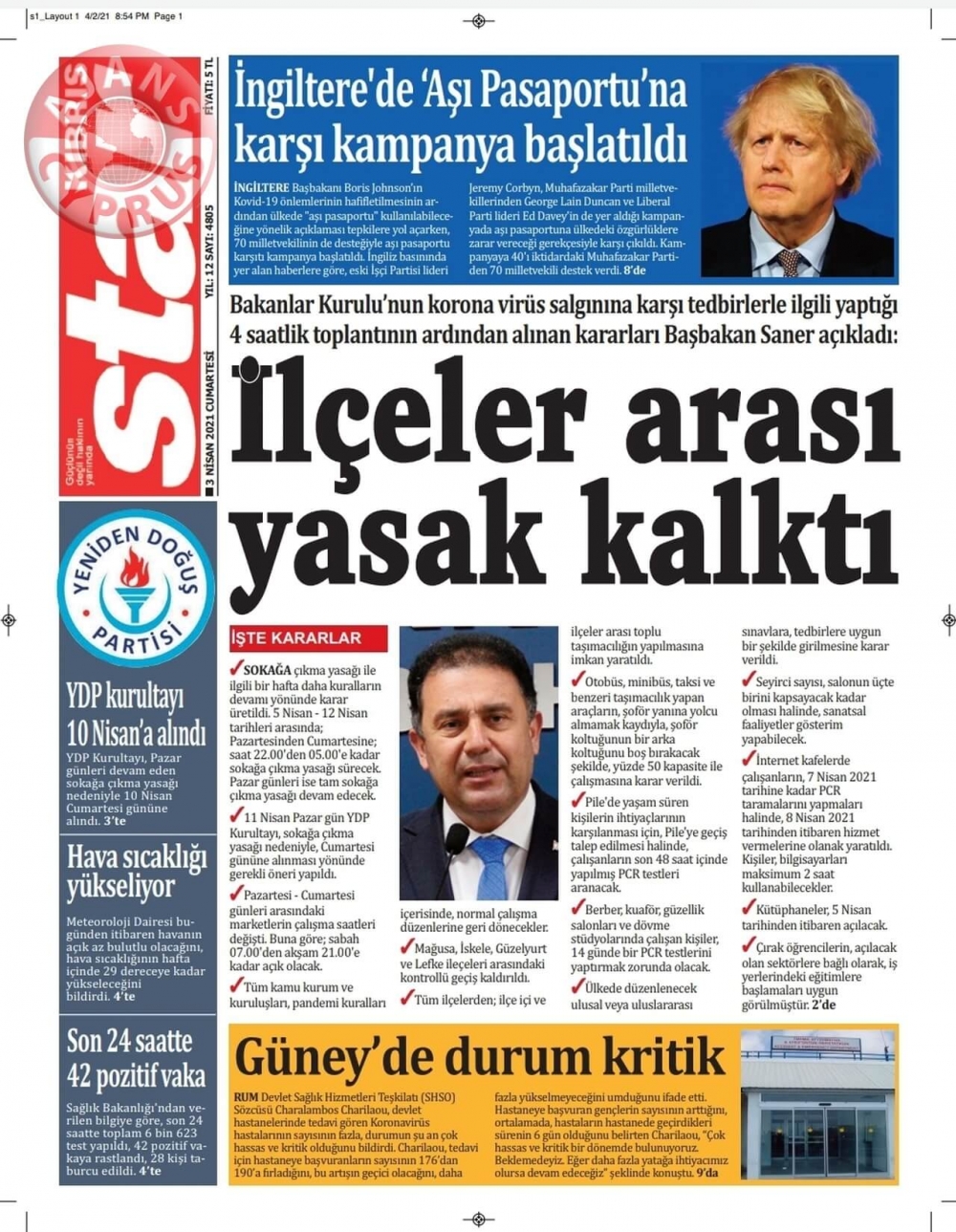 KKTC'de Bugün Gazeteler Ne Manşet Attı? ( 3 Nisan 2021)