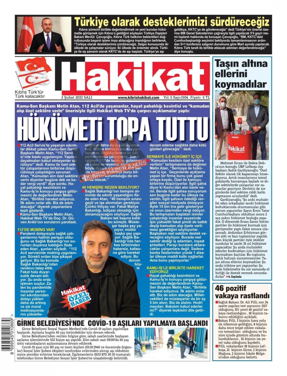 KKTC'de Gazeteler Bugün Ne Manşet Attı? (02 Şubat 2021)
