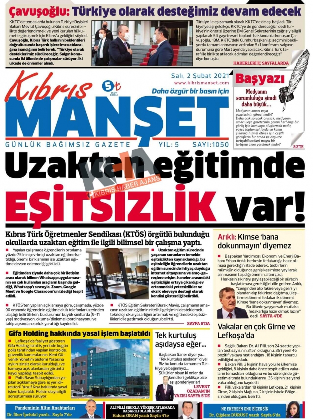KKTC'de Gazeteler Bugün Ne Manşet Attı? (02 Şubat 2021)