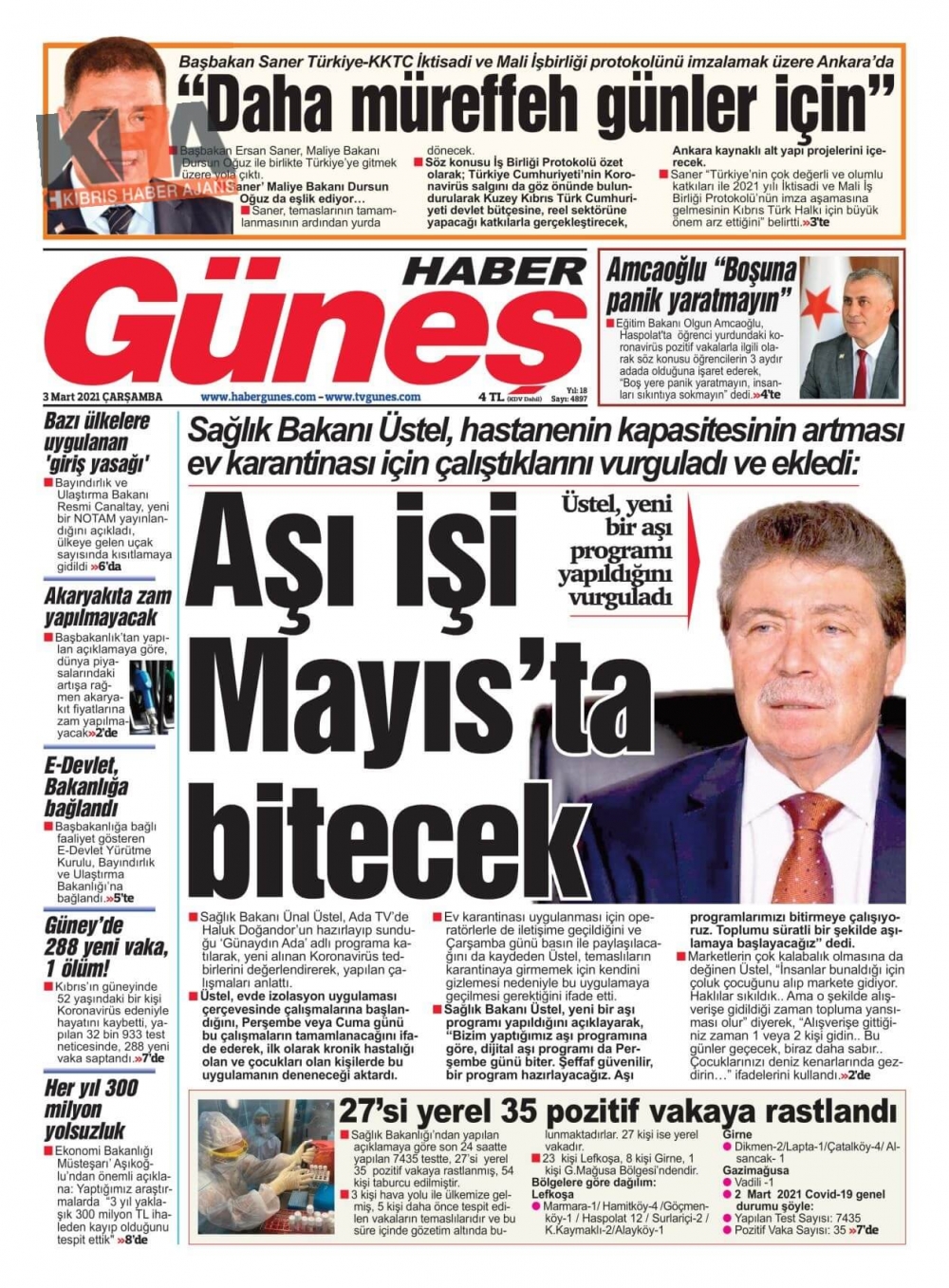 KKTC'de Gazeteler Bugün Ne Manşet Attı? (03 Mart 2021)