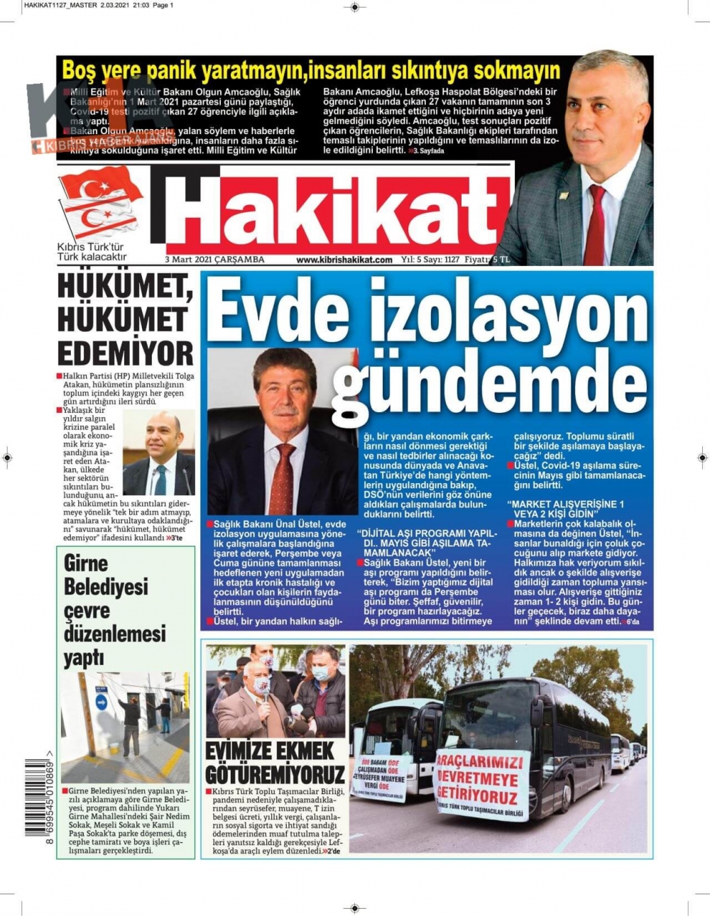 KKTC'de Gazeteler Bugün Ne Manşet Attı? (03 Mart 2021)