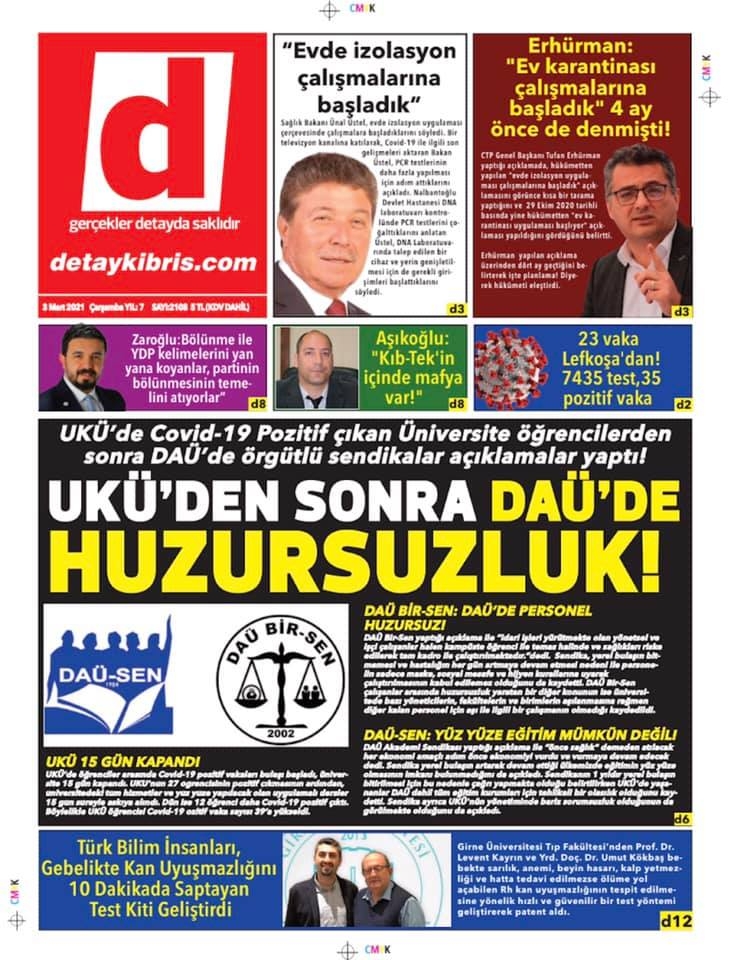 KKTC'de Gazeteler Bugün Ne Manşet Attı? (03 Mart 2021)