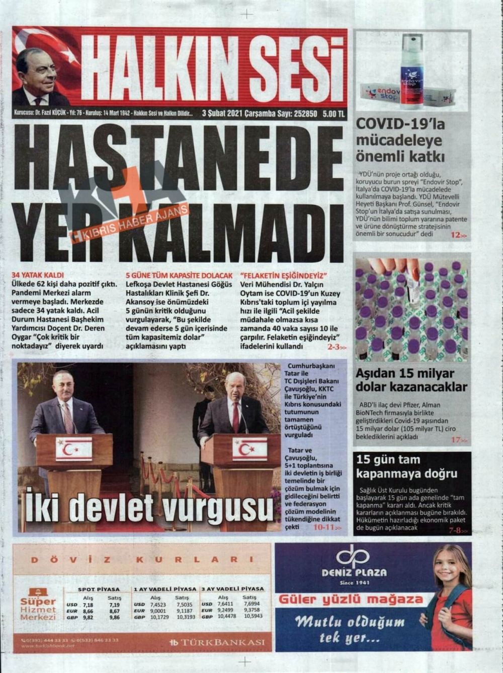 KKTC'de Gazeteler Bugün Ne Manşet Attı? (03 Şubat 2021)