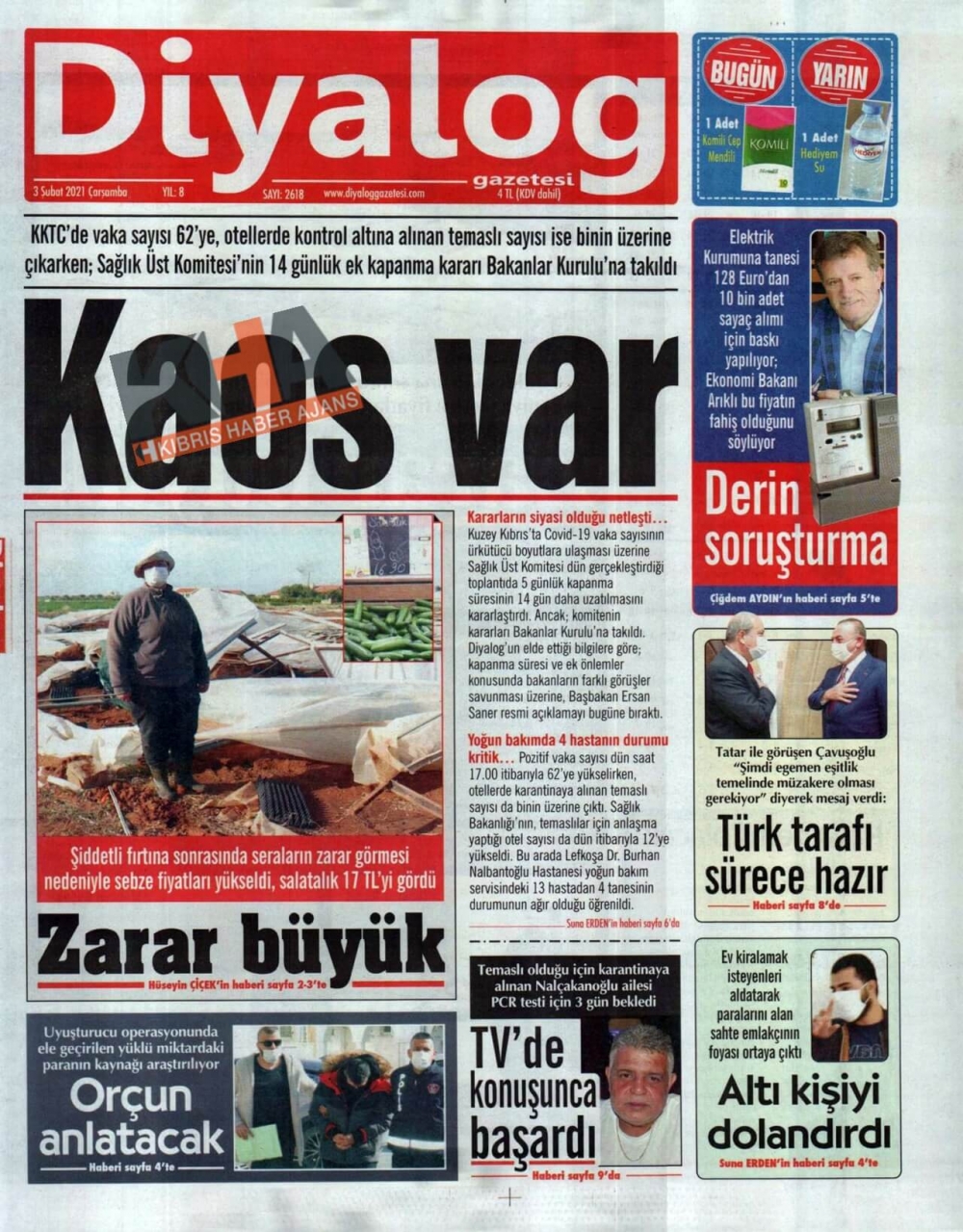 KKTC'de Gazeteler Bugün Ne Manşet Attı? (03 Şubat 2021)