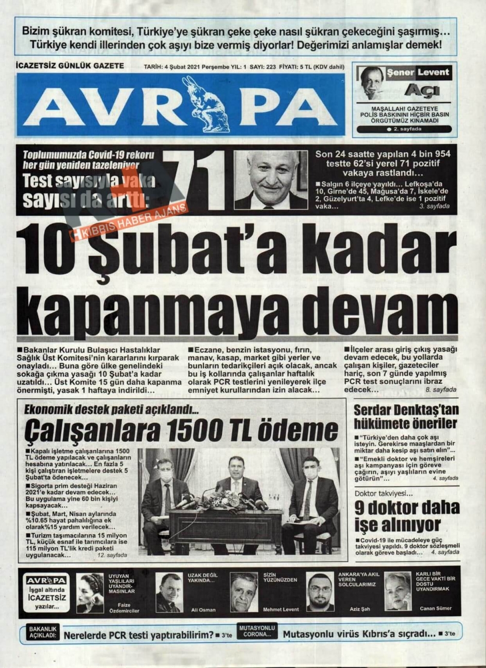 KKTC'de Gazeteler Bugün Ne Manşet Attı? (04 Şubat 2021)