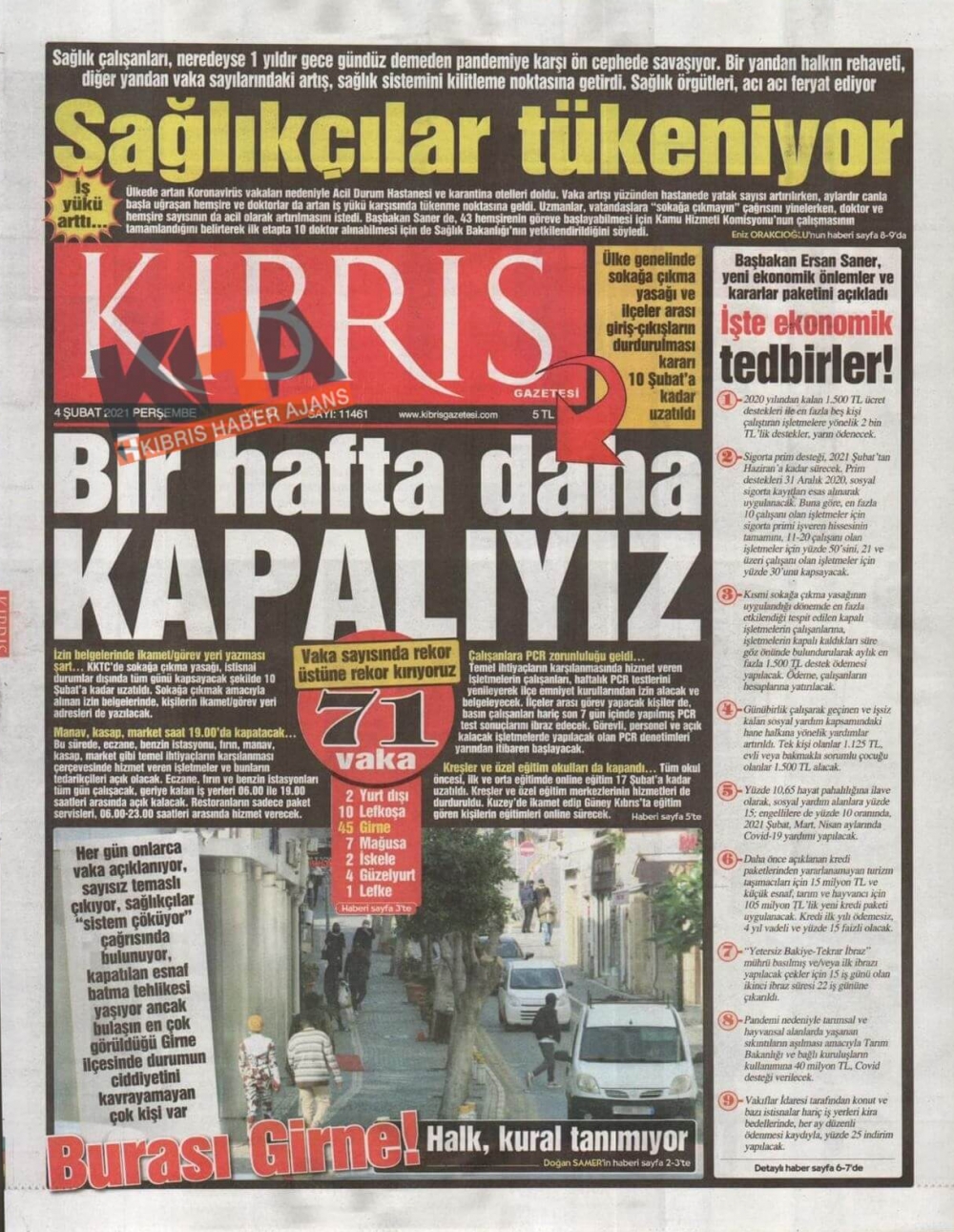 KKTC'de Gazeteler Bugün Ne Manşet Attı? (04 Şubat 2021)