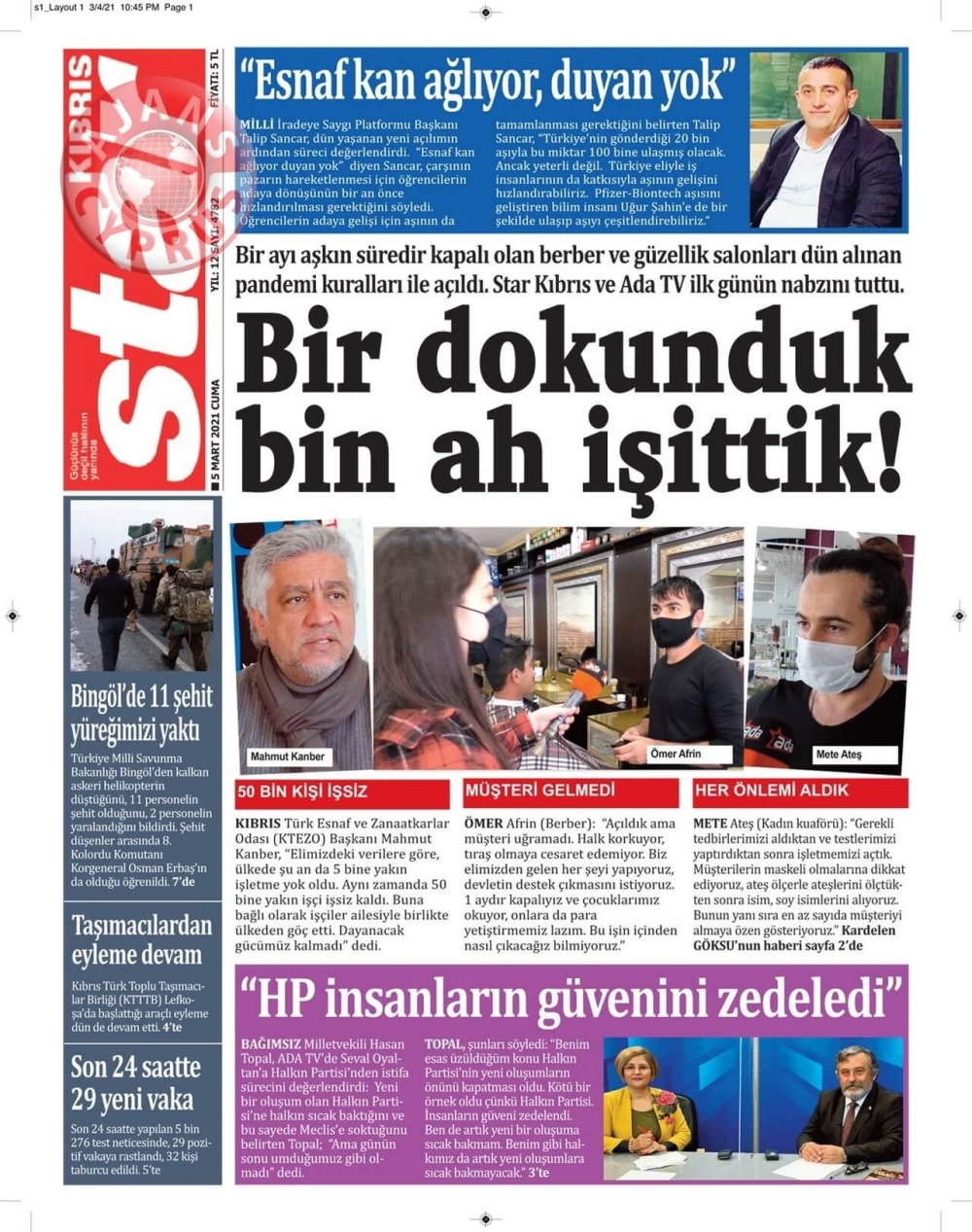 KKTC'de Gazeteler Bugün Ne Manşet Attı? (05 Mart 2021)