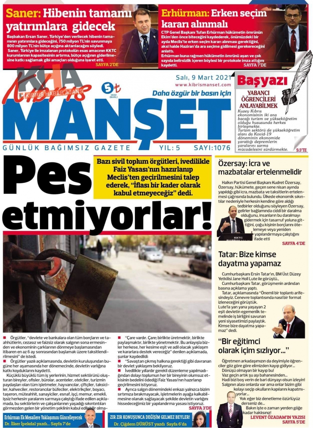 KKTC'de Gazeteler Bugün Ne Manşet Attı? (09 Mart 2021)