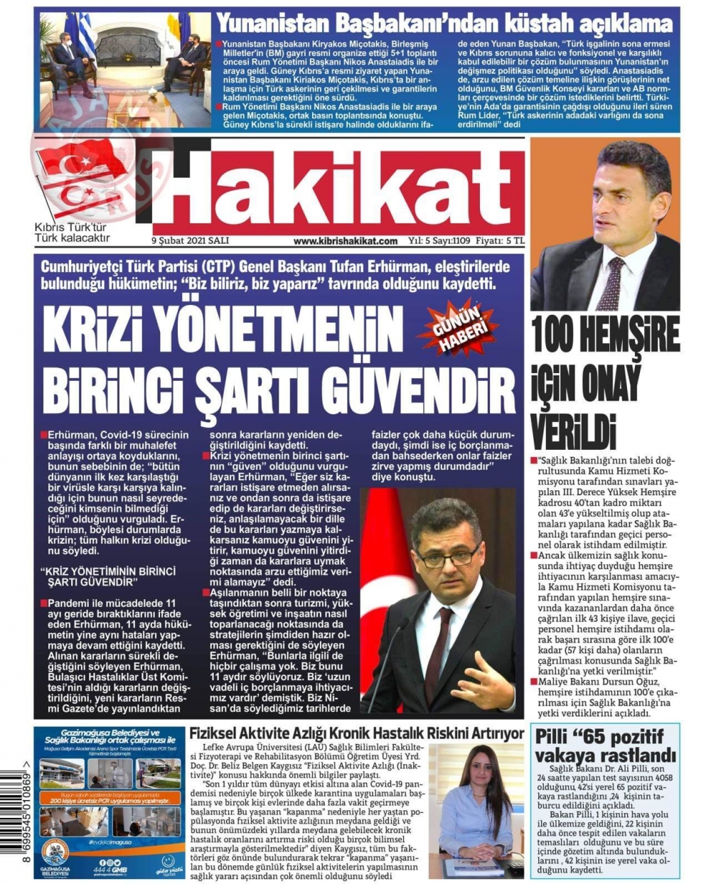 KKTC'de Gazeteler Bugün Ne Manşet Attı? (09 Şubat 2021)