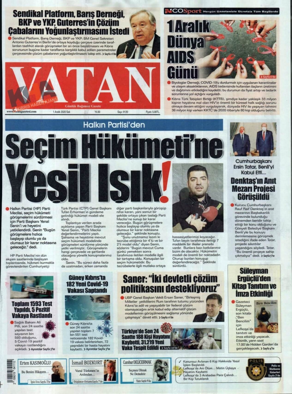 KKTC'de Gazeteler Bugün Ne Manşet Attı? (1 Aralık 2020)