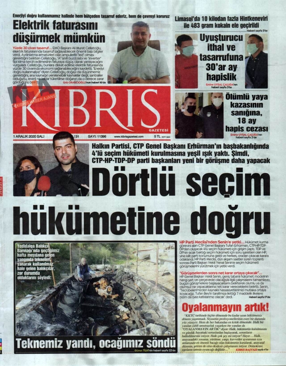 KKTC'de Gazeteler Bugün Ne Manşet Attı? (1 Aralık 2020)