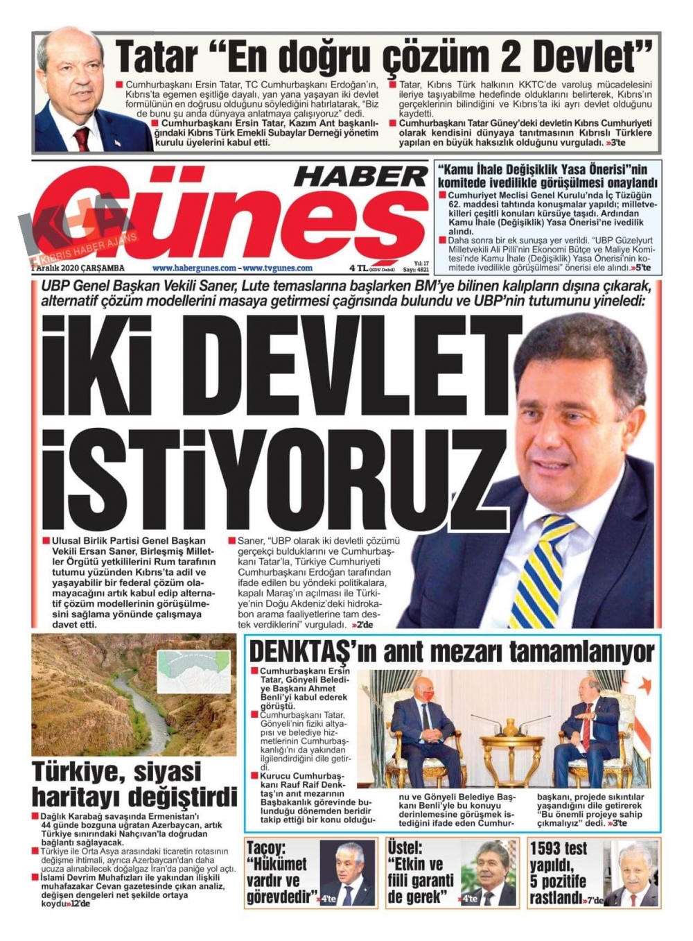 KKTC'de Gazeteler Bugün Ne Manşet Attı? (1 Aralık 2020)