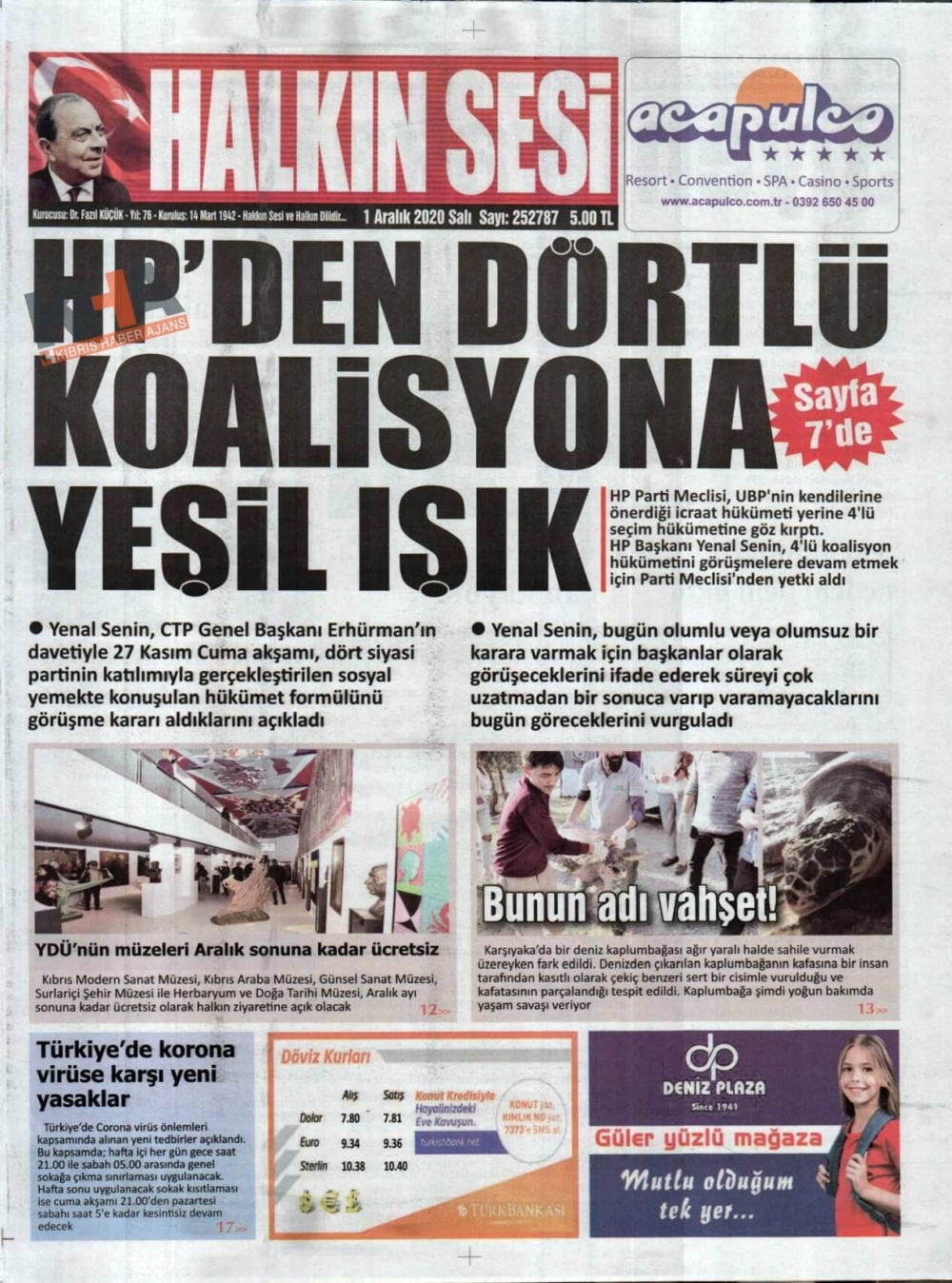 KKTC'de Gazeteler Bugün Ne Manşet Attı? (1 Aralık 2020)
