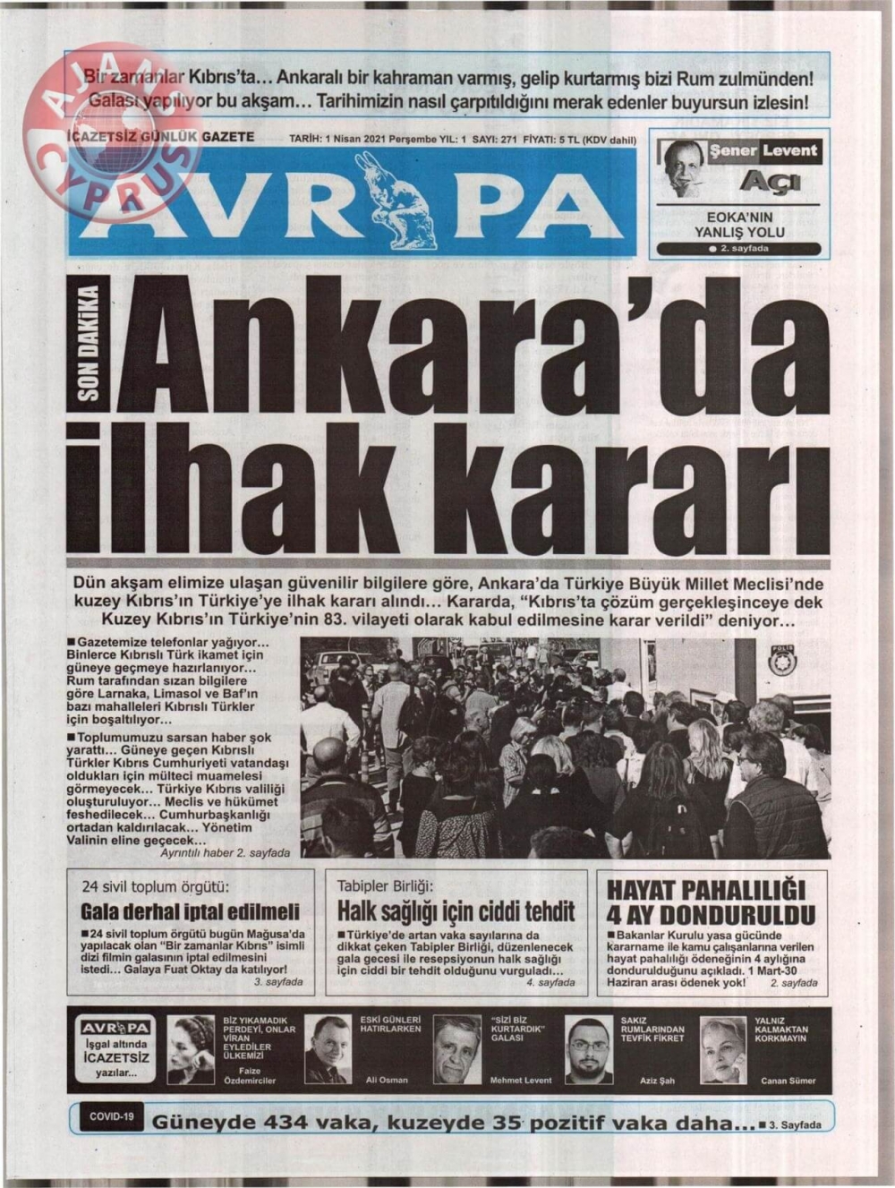 KKTC'de Gazeteler Bugün Ne Manşet Attı? (1 Nisan 2021)