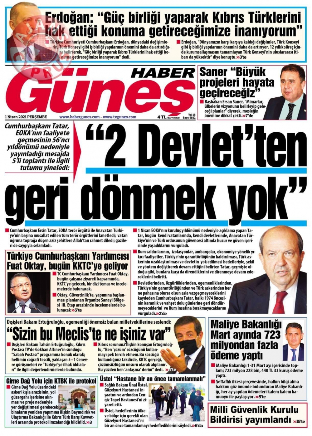 KKTC'de Gazeteler Bugün Ne Manşet Attı? (1 Nisan 2021)