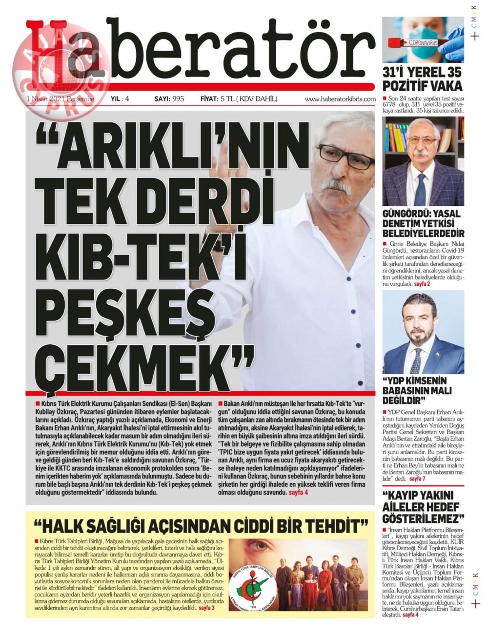 KKTC'de Gazeteler Bugün Ne Manşet Attı? (1 Nisan 2021)