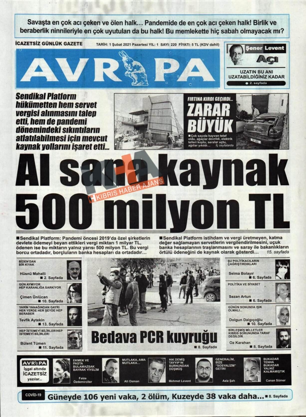 KKTC'de Gazeteler Bugün Ne Manşet Attı? (1 Şubat 2021)