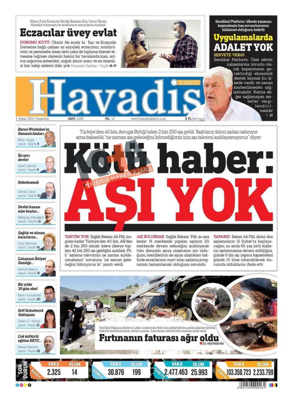 KKTC'de Gazeteler Bugün Ne Manşet Attı? (1 Şubat 2021)