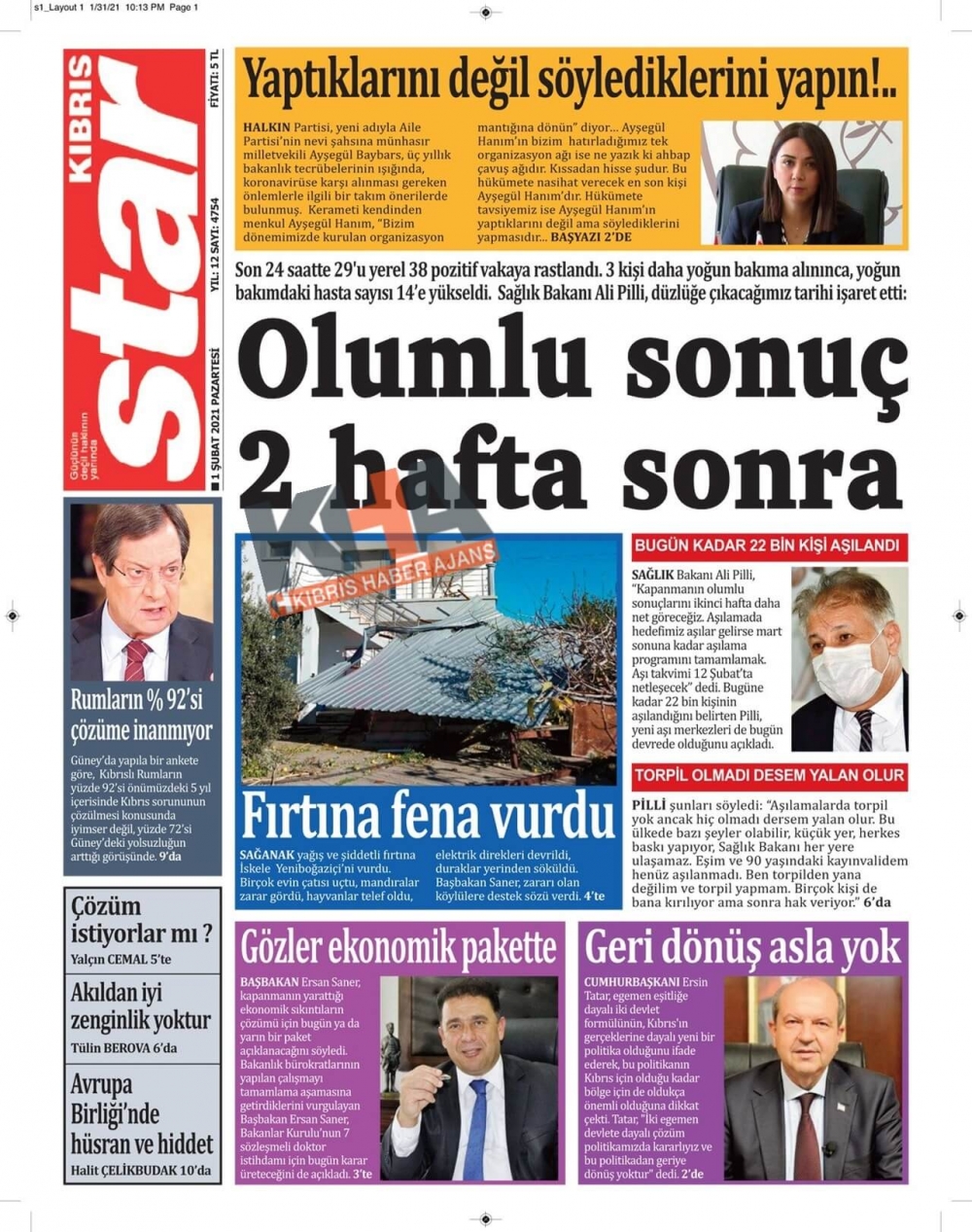 KKTC'de Gazeteler Bugün Ne Manşet Attı? (1 Şubat 2021)